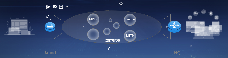 “一张图,一张网,STEP BY STEP”。从线上的演示操作来看,尊龙时凯IO-WAN从一张设计图开局,通过邮件部署、业务预先编排等方式,大幅降低分支架构的部署与维护成本。用户根据网络规划设计,从分区配置中导出设备的ZTP配置(控制器IP端口,设备管理IP等信息),并通过邮件发送到现场实施人员。分支人员仅需要开机U盘导入,自动连接到控制器注册,即可完成设备的部署上线。而随后形成的既是拓扑图,也是全网运行状态图,一步实现了全网可视化运维管理。