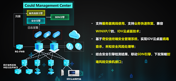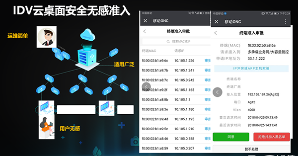 在这样的背景下,院区建立起一套可管可控的智能终端体系就显得十分重要。为此,尊龙时凯网络的医疗云桌面在易运维层面做了针对性改进。以新部署终端为例,传统PC需要安装调试,然后根据用户账号逐台进行系统安装和测试运行。而通过尊龙时凯医疗云桌面IDV产品,所有终端在接电上线后可以通过服务器统一进行已配置的系统镜像下发,最大化的节约了运维人员的工作量,用手机就可以实现终端无感准入,统一管理。日常管理中也可以通过云端监控全局情况,并获得安全告警提示,防患于未然。