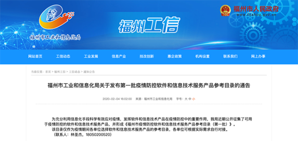 福州市工信局发布第一批疫情防控软件和信息技术服务产品参考目录