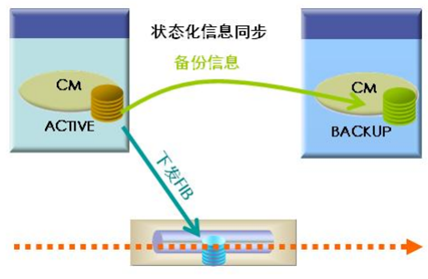 UISS②的主备引擎的热备份过程主要分为批量状态备份、实时状态备份和数据不间断转发三个阶段。通过对等同步技术来实现批量状态备份、实时状态备份,通过数据面与控制面分离和对等同步实现数据不间断转发。
